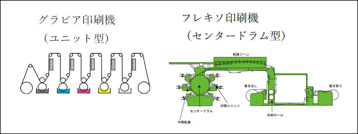 フレキソ印刷は、センタードラムの直径が大きいため、偏肉素材の場合でもしわ等の印刷トラブルが少なく印刷できます。